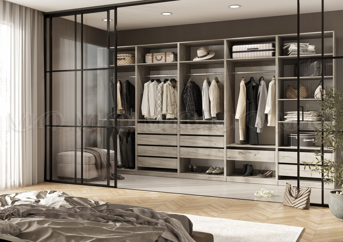 Артикул: A65015Гардеробная/шкаф 2200*1706 мм Ларго №3 дуб крафт серый/кашемир (Миф)