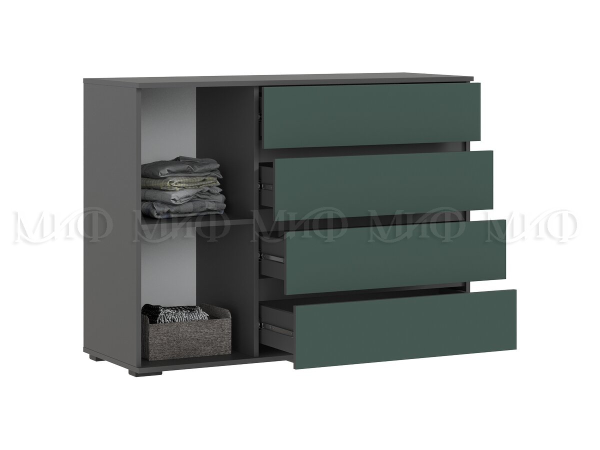 Комод 1 дверь 4 ящика (1200) Норд, графит/изумруд (Миф)