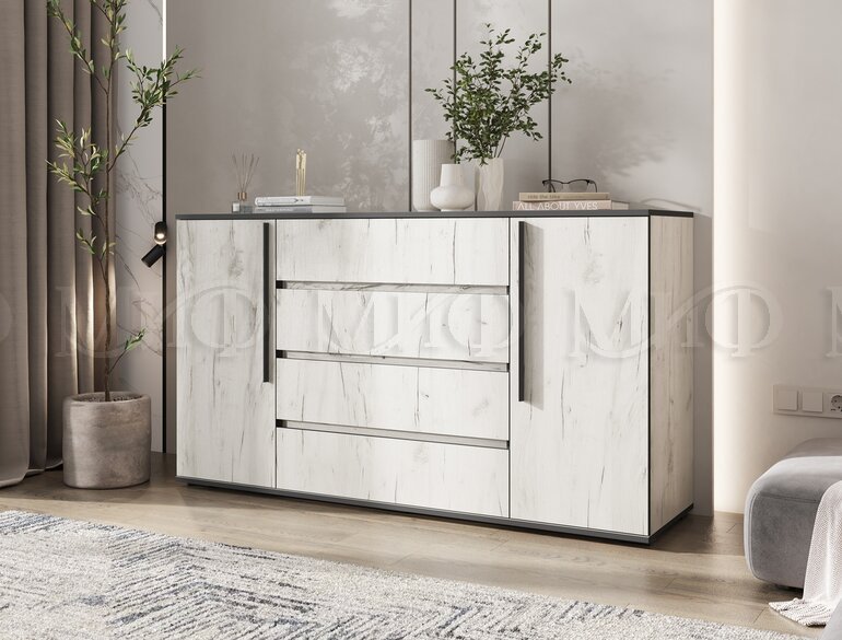 Комод 2 двери 4 ящика (1600) Норд, крафт белый (Миф)