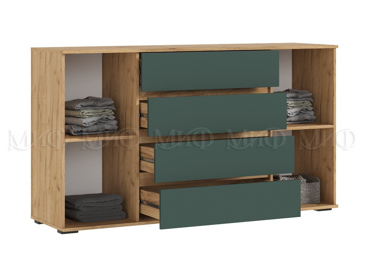 Комод 2 двери 4 ящика (1600) Норд, крафт/изумруд (Миф)