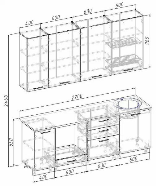 Артикул: A60134Угловой кухонный гарнитур Трансильвания 2200*1000 мм