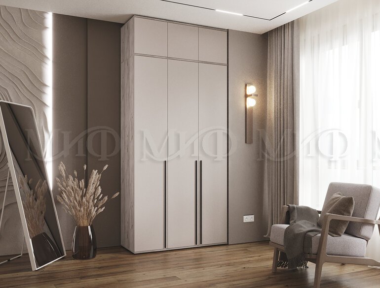 Шкаф 1200 мм 3-х ств. Норд с антресолью крафт серый/кашемир (Миф)