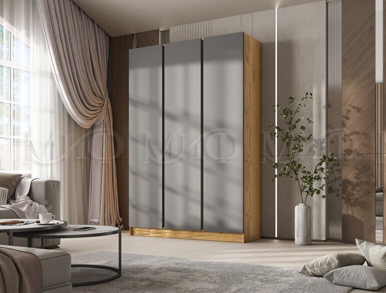 Шкаф 1500 мм 3-х створчатый Келвин дуб золотой/графит (Миф)