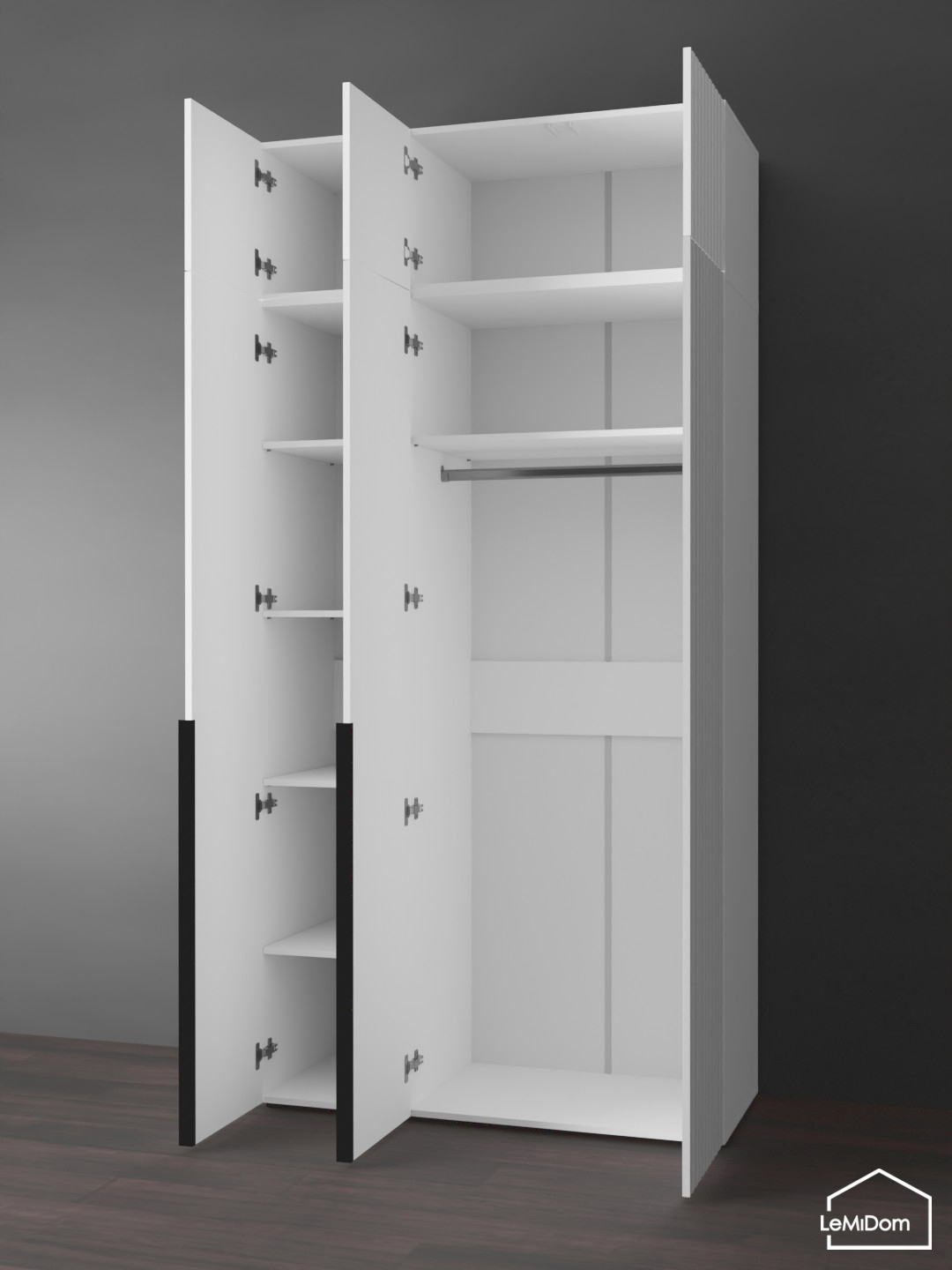 • У шкафа торцевая пластиковая ручка (100см), а у антресоли дверь без ручки (система открывания PUSH to OPEN).