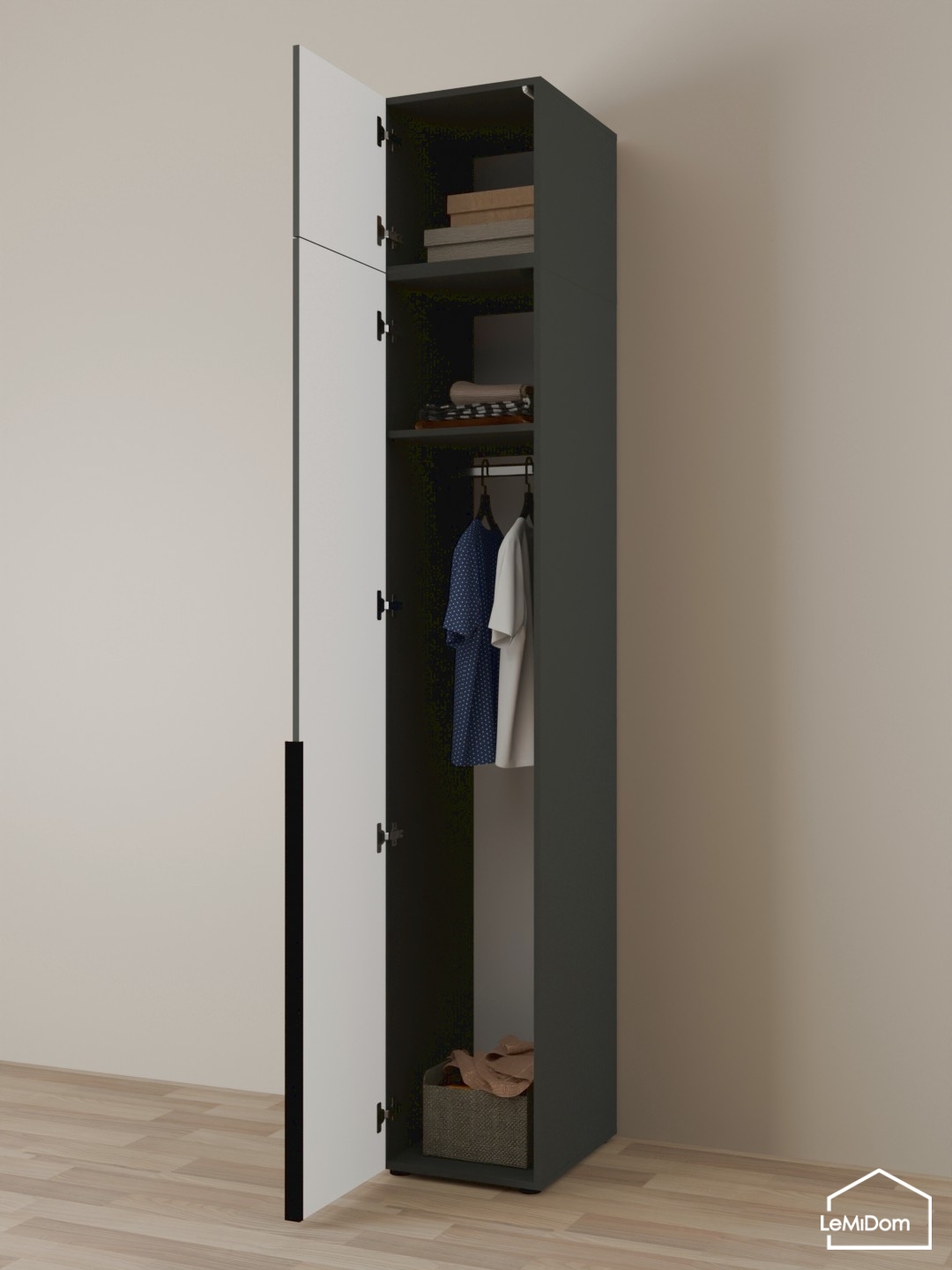 Артикул: A56051Шкаф с антресолью 400 мм Linnea MHR-1A-3 2450х400х510 (Графит-М 11.1.25)