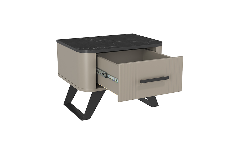 Тумба прикроватная 76.07 Фиделия (серый камень / мрамор черный / ДВПО: серый камень / ПВХ серый камень / профиль: Masa Decor серый камень) исполняется в классическом стиле и спокойных цветах. Модель сочетает в себе простоту и функциональность, но при этом не выглядит громоздко. Она гармонично впишется в пространство, не утяжеляя его.